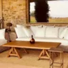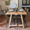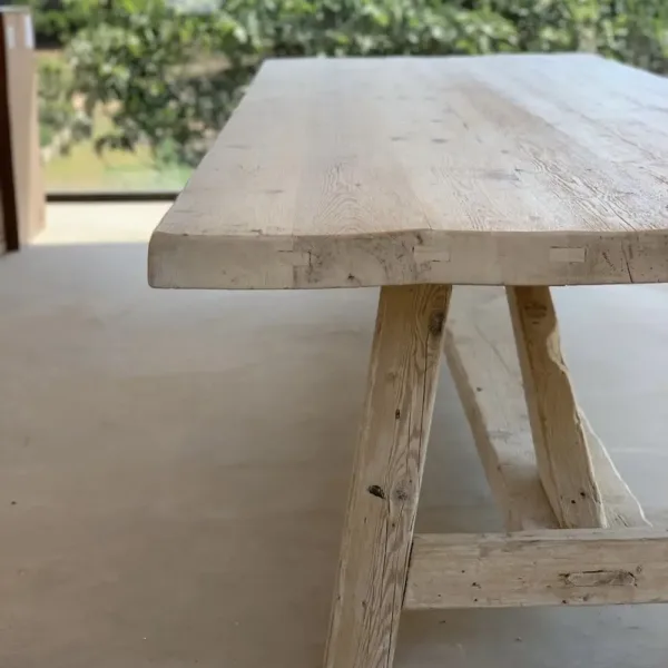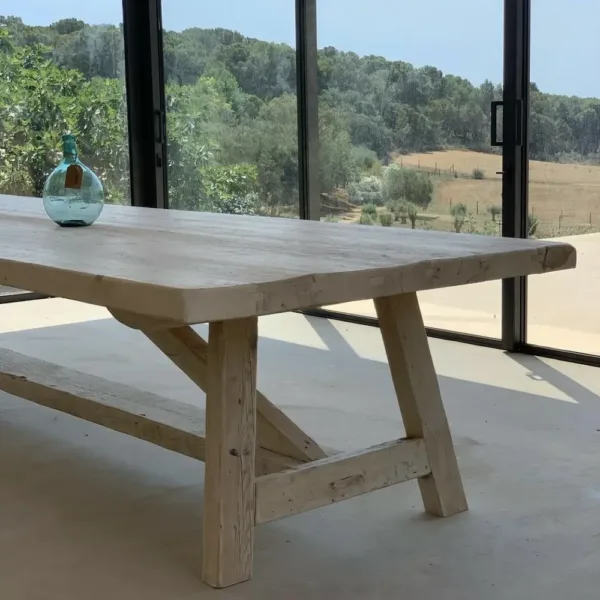 La mesa “Aiguablava” estilo caballetes es una pieza única que combina rusticidad, sencillez y diseño artesanal.