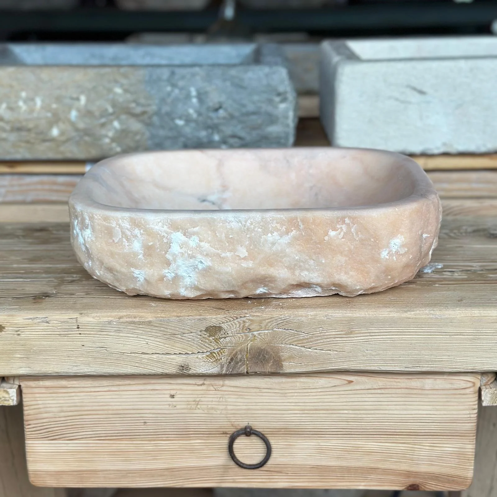 El contraste entre el exterior rugoso y el interior pulido crea una pieza equilibrada y funcional que se integra en espacios tanto rústicos como modernos. "Alvor" no es solo un lavabo: es un fragmento de naturaleza transformado en diseño atemporal.