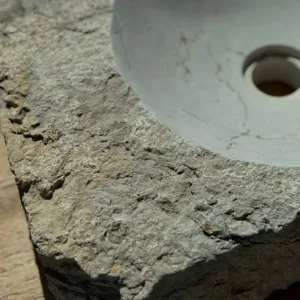 Su tamaño compacto es ideal para baños pequeños o para quienes buscan una pieza con gran personalidad en un espacio reducido. "Bolvir" no pasa desapercibida: cada una es distinta, marcada por la piedra que le da vida, con vetas, texturas y formas propias.