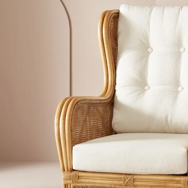 🪵 Material: Ratán natural trenzado a mano con cojines tapizados