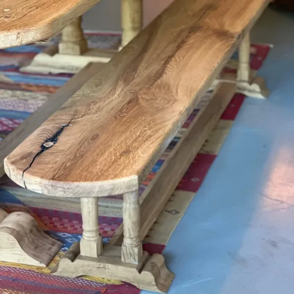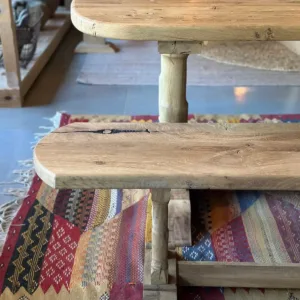 Además, puede completarse con 1 o 2 banquitos opcionales fabricados con el mismo roble recuperado, acabado y diseño, logrando así un conjunto perfectamente coordinado y armónico.