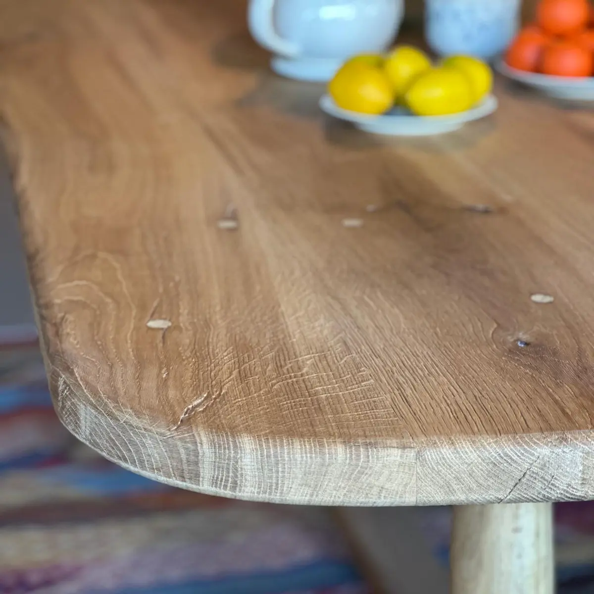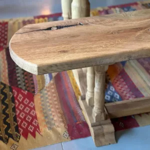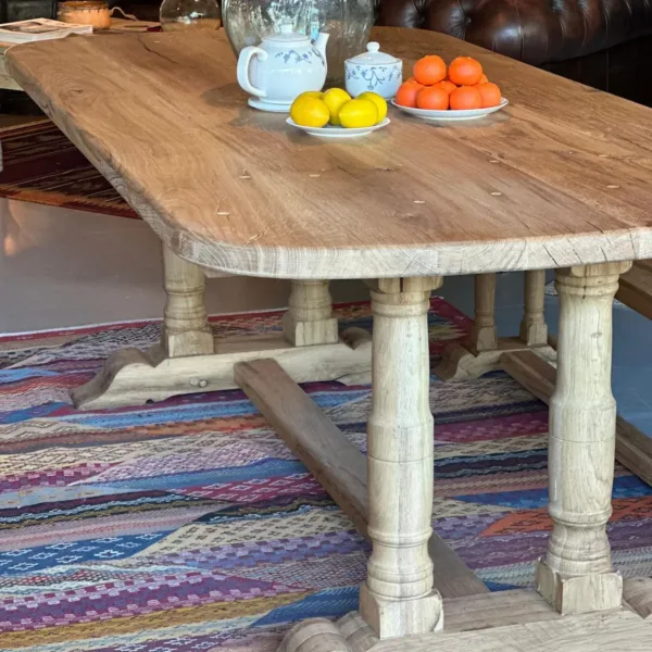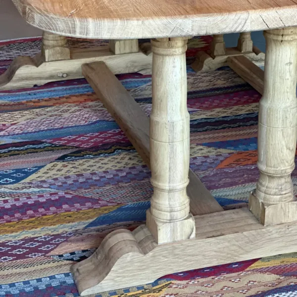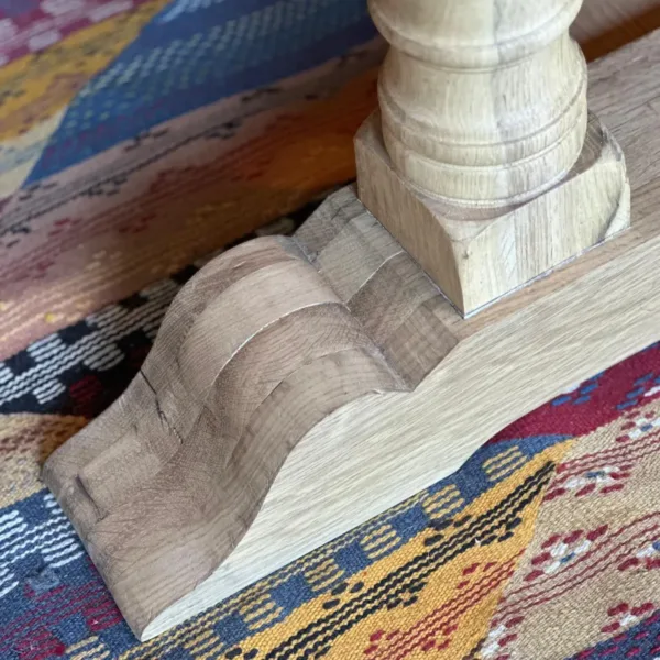Sus patas torneadas talladas a mano son un homenaje a la ebanistería clásica, aportando personalidad y un sello artesanal que convierte cada mesa en un ejemplar único.