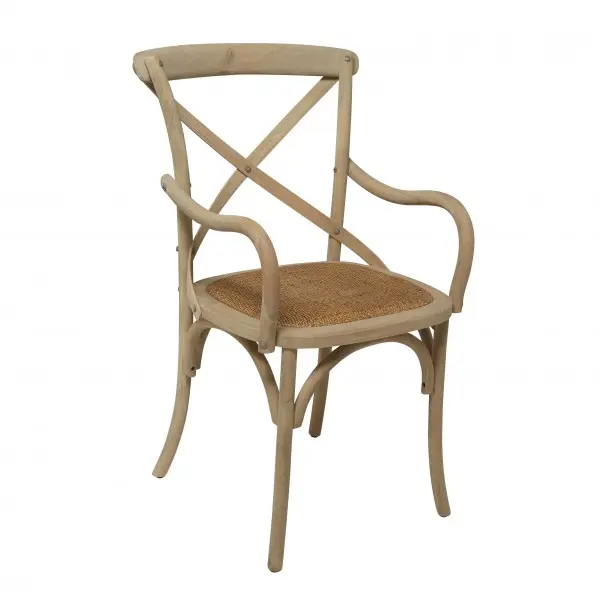 Inspiradas en el encanto de los cafés franceses, las sillas “Bistrot Lille” aportan elegancia y calidez natural a cualquier espacio. Su diseño con brazos curvados, respaldo cruzado y asiento de rejilla trenzada combina confort, estilo y autenticidad artesanal.