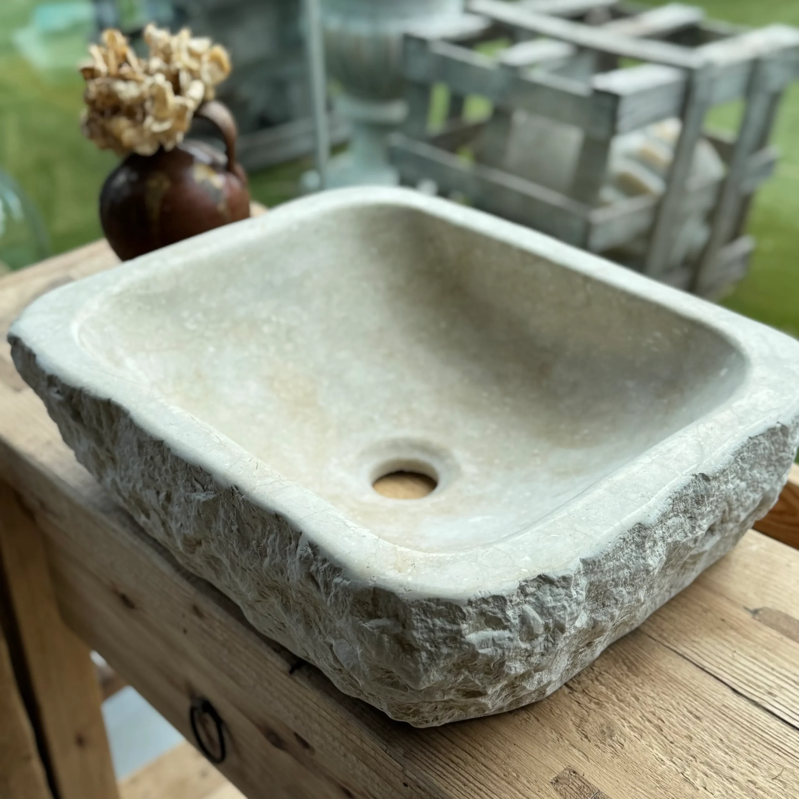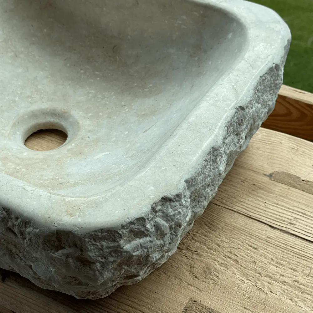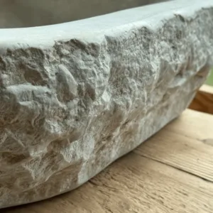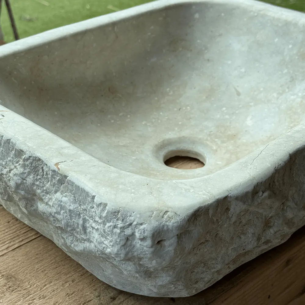 Tallada artesanalmente en piedra del Esquirol, su tonalidad cálida y sus pequeñas imperfecciones naturales reflejan la belleza de lo auténtico. Es ideal para baños de estilo rústico, natural o contemporáneo donde se valore la esencia material.