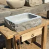 Cada «Pedra Viva» es una pieza única. El exterior mantiene su aspecto rugoso y mineral, mientras que el interior es suave y pulido, creando un equilibrio perfecto entre rusticidad y refinamiento. Este lavabo se integra con elegancia en espacios modernos, rústicos o mediterráneos, aportando una presencia serena y atemporal.