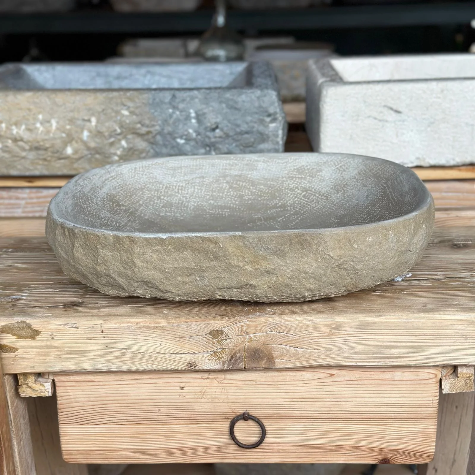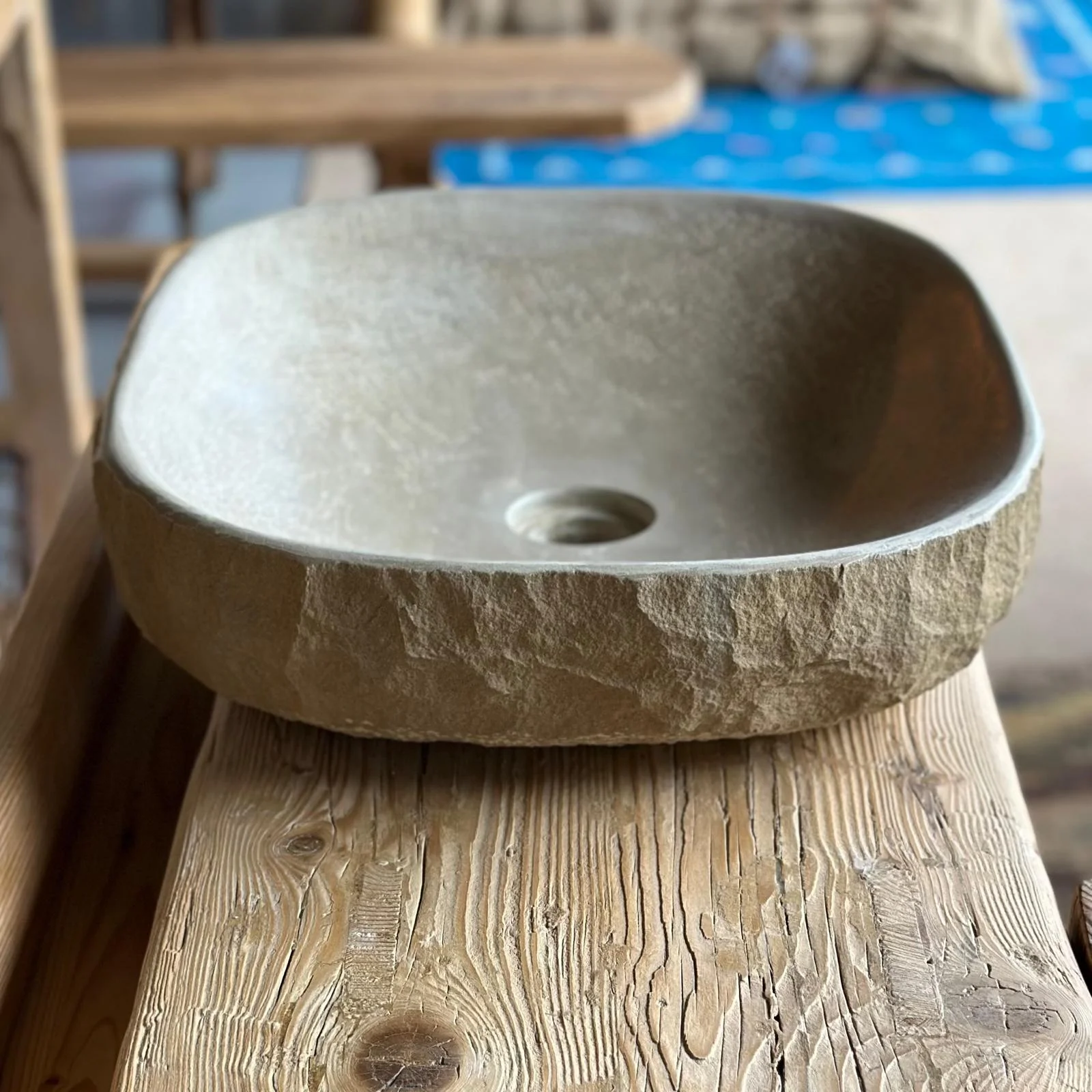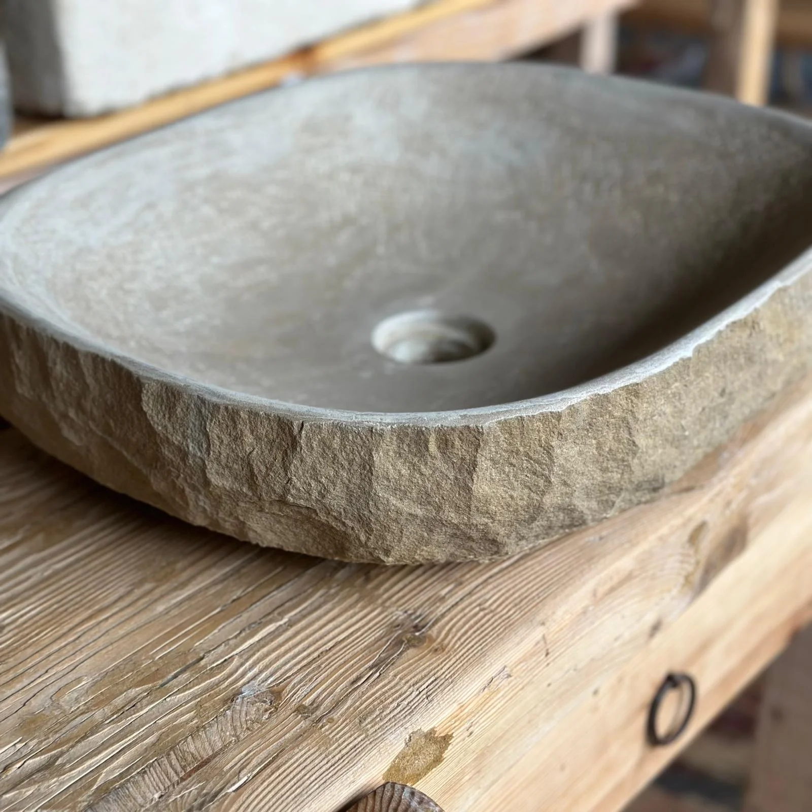 Una pieza con alma, tallada a mano en piedra natural de Vinaixa. «Pedra Viva» nace del deseo de conservar la artesanía y la belleza de la piedra en su forma más pura. Con líneas orgánicas y textura viva, es perfecta para baños con carácter, combinando fuerza, elegancia y autenticidad.