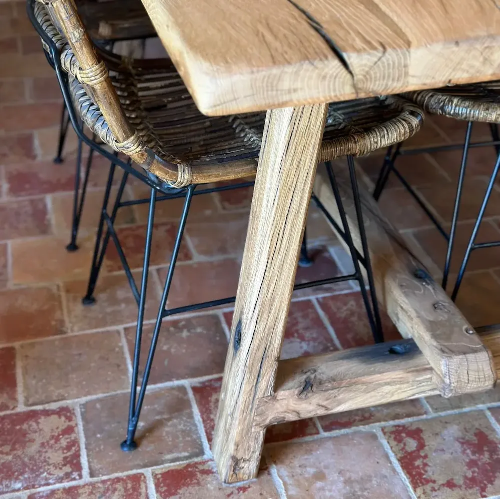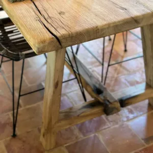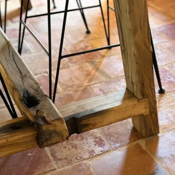 El diseño de patas en forma de caballetes ofrece una gran estabilidad y al mismo tiempo un aire rústico y auténtico, ideal tanto para interiores con estilo tradicional como para ambientes modernos que buscan un contraste único.