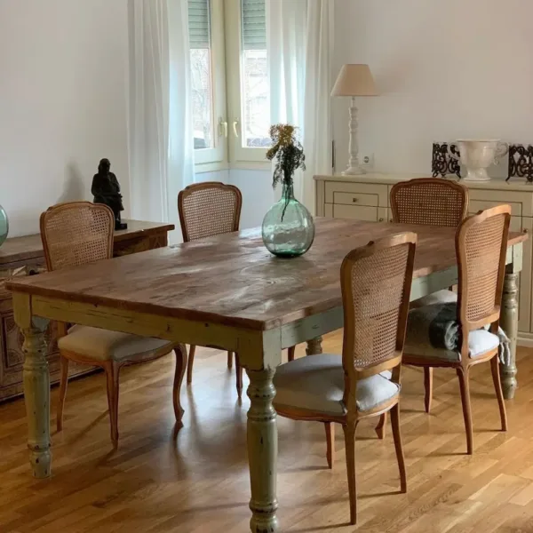 Fabricada de manera artesanal, cada pieza es única: las vetas, marcas y texturas propias del pino recuperado hacen de la “Sant Gervasi” una mesa exclusiva, ideal para comedores que buscan personalidad y autenticidad en su decoración.