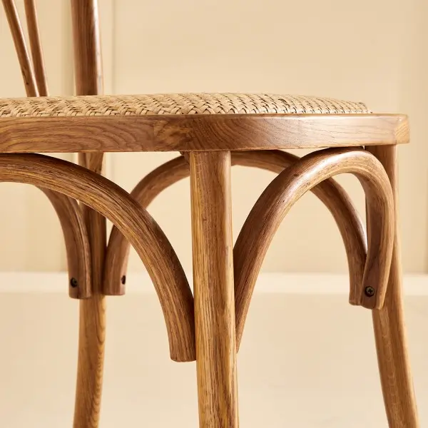 Ligereza, elegancia y un encanto artesanal inconfundible. El pack de 2 sillas “Lyon” destaca por su diseño curvado con respaldo entrelazado y asiento de rejilla trenzada. Su estilo natural aporta frescura y armonía a cualquier comedor o cocina.