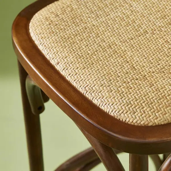Elegante y funcional, el taburete alto “Montmartre” combina una silueta clásica con respaldo curvado y asiento de rejilla trenzada. Ideal para barras o cocinas con encanto, ofrece comodidad, estabilidad y un diseño natural que nunca pasa desapercibido.