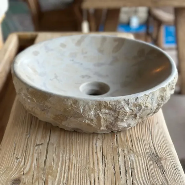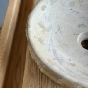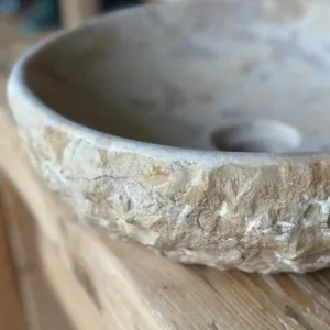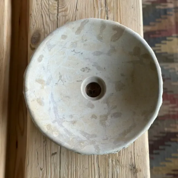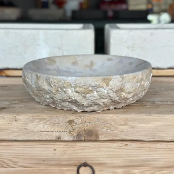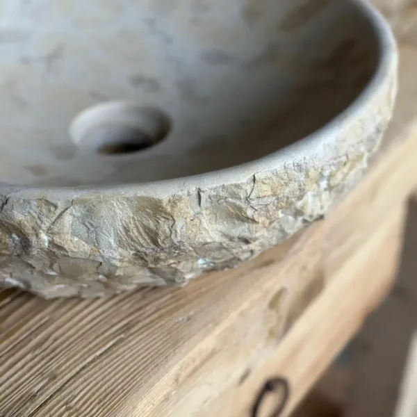 Sus tonos arena y beige claro reflejan la luz con sutileza, aportando una calidez natural al baño. “Tamariu” es ideal para quienes buscan una pieza artesanal con alma mediterránea, donde cada detalle revela el trabajo y respeto por la materia prima.